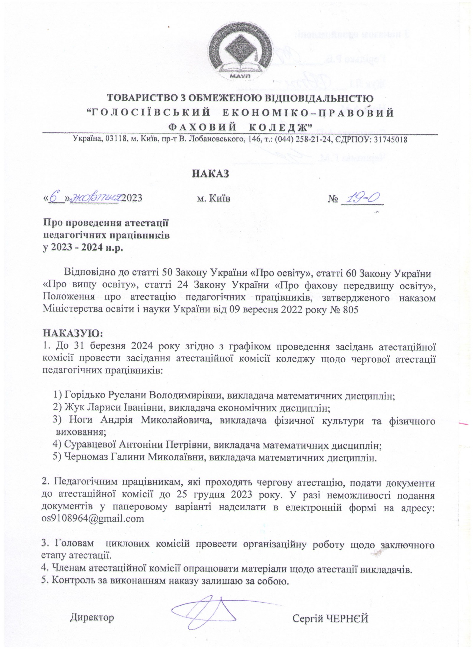 Зміни до наказу про проведення атестацій