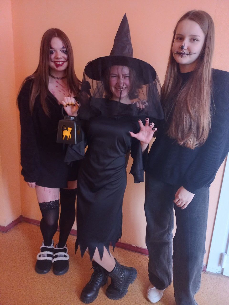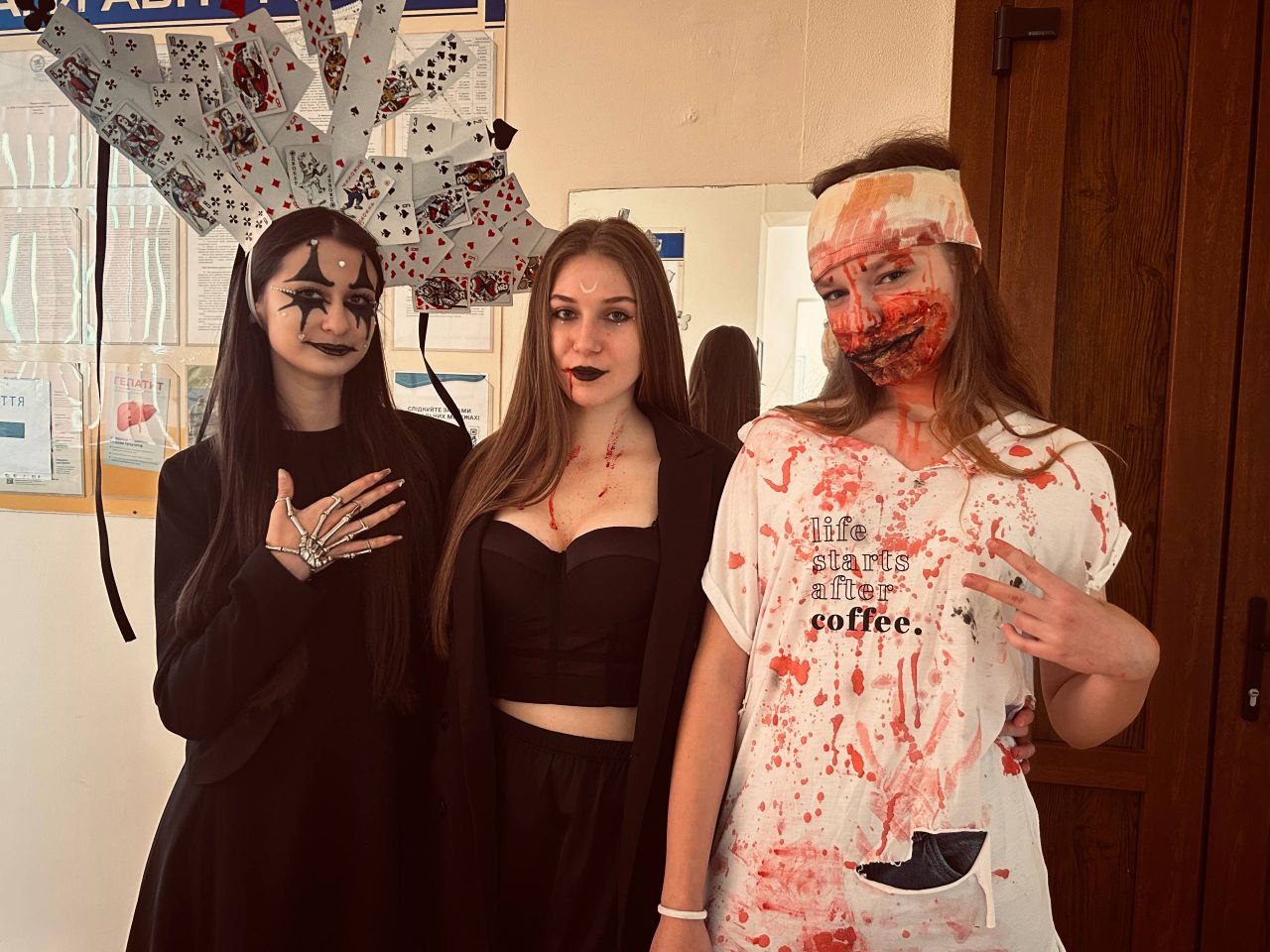 Студенти з ентузіазмом долучилися до тематичного дійства, перетворивши заклад на справжній осередок осінньої магії та веселого жаху (горобина, квіти, гарбузи, свічки, маски, розмальовані обличчя студентів і тематичні байки від викладачів). Найбільше захоплення викликали костюмовані персонажі — кожен образ був унікальним: від класичних відьом, чортів та демонів до самураїв , людей-павуків та інших сучасних персонажів із кіно та коміксів. Окрему подяку адміністрація висловлює Студентській раді і, зокрема, її очільниці Валерії Пушкарській, а також заступнику Голови студради Кирилу Романенку, які підготували захід. Завдяки їхній ініціативі та організації ми учергове довели, що коледж - це не лише місце навчання, а й простір для творчості, спілкування та гарного настрою.