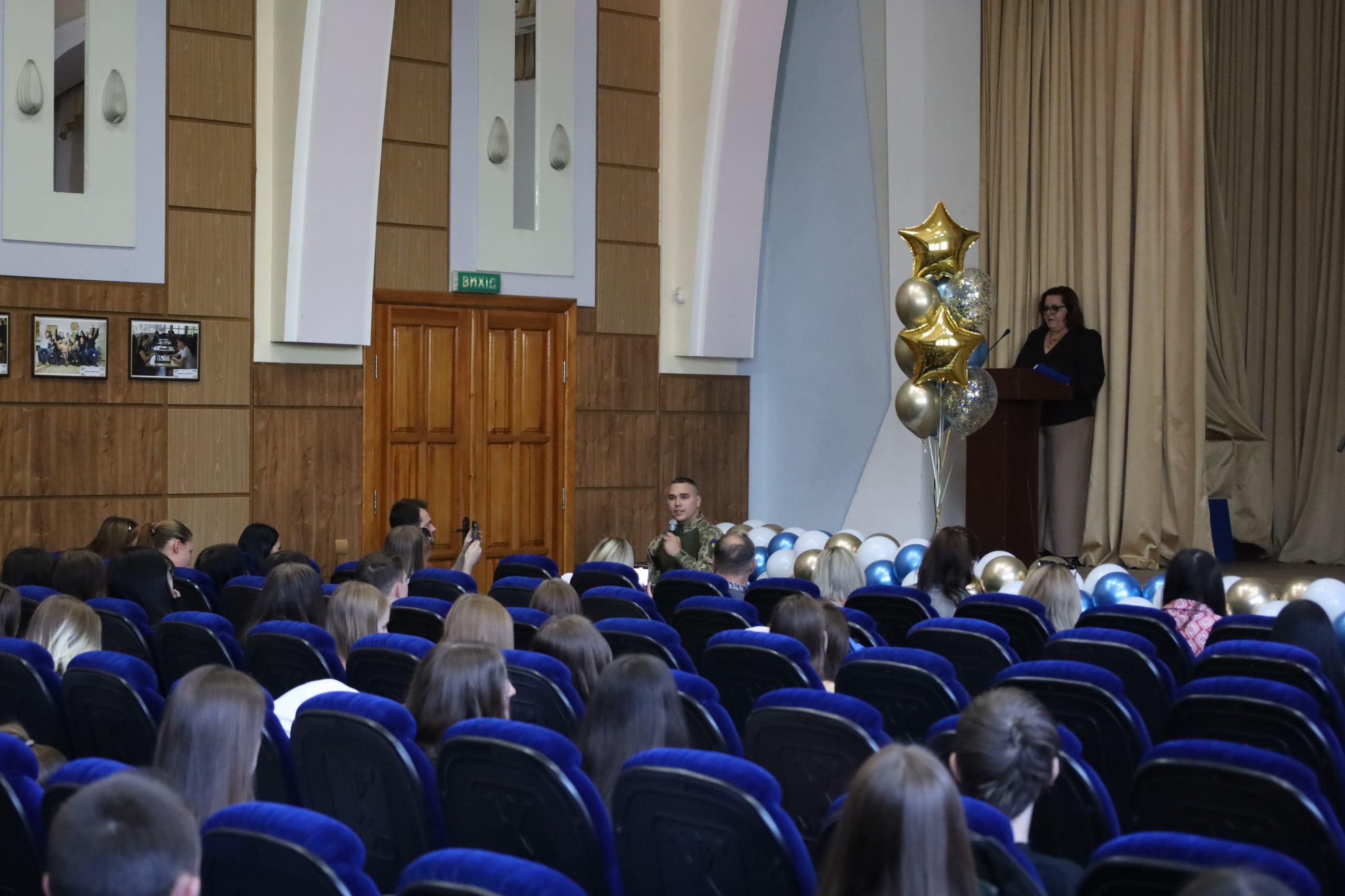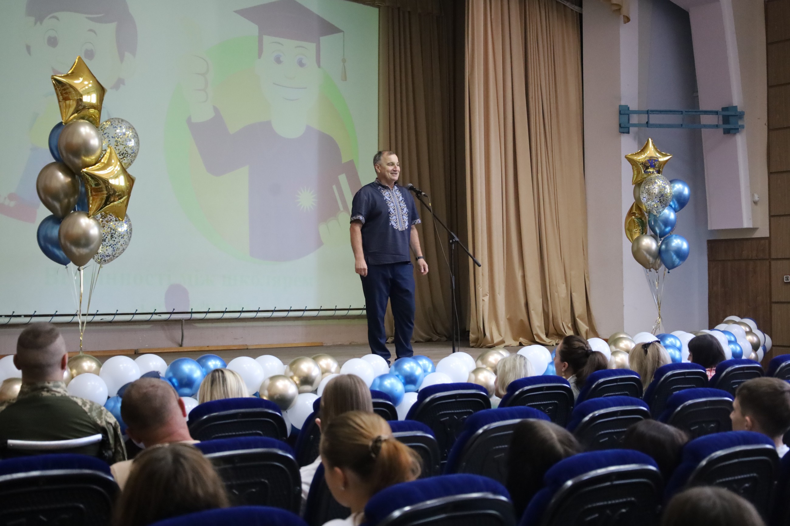 У Голосіївському економіко-правовому фаховому коледжі відбулися урочисті збори першокурсників з нагоди Дня Знань. Ця подія традиційно об’єднує студентів, викладачів та адміністрацію закладу, відкриваючи нову сторінку в житті молоді. Збори розпочалися зі вшанування загиблих героїв та жертв російської атаки на Київ. Гостями першокурсників були Андрій Сіромаха - ветеран війни, відомий громадський діяч, волонтер, актор; його соратник, ветеран війни, снайпер розвідроти 114 бригади ЗСУ Олександр Брідня, диякон ПЦУ отець Микола Раєвський. Вітали присутніх у цей день доктор політичних наук, професор Катерина Павлівна Швець, директор Голосіївського ЕПФК Чернєй Сергій Іванович; заступники директора Кузьмич Ольга Володимирівна та Прокопенко Світлана Іванівна, директор департаменту позанавчальної роботи МАУП Чулова Людмила Юріївна: виступаючі наголосили на важливості здобуття якісної освіти в сучасних умовах та окреслили головні завдання, що стоять перед молоддю, і побажали студентам наснаги, відповідальності та віри у власні сили.