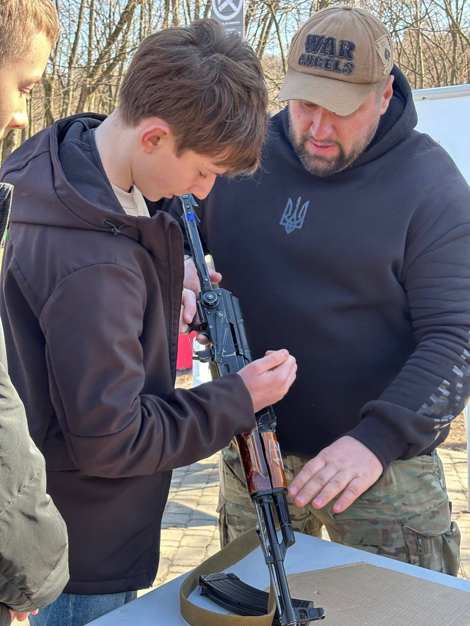 Перша станція була присвячена вогневій підготовці. Там нам показали автомат Калашникова і пояснили, як він влаштований. Інструктор продемонстрував порядок неповного розбирання та складання автомата, а також розповів про основні правила безпечного поводження зі зброєю. Ми побачили, з яких частин складається автомат і як правильно виконувати основні дії під час його освоєння.